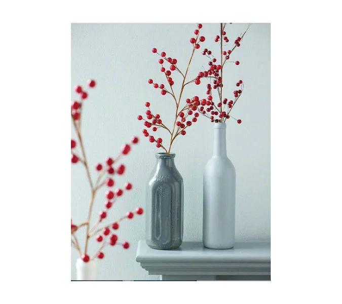 I'm a fan of easy, stylish "do-it-yourself" ideas, and this one fits the bill.  You simply spray paint a bottle to make it white; or any colour you like.  I personally prefer the look of white, since it becomes so clean and fresh. This time of year its great to add some summer flowers, branches or greenery. 0911RL-painted-bottles-625