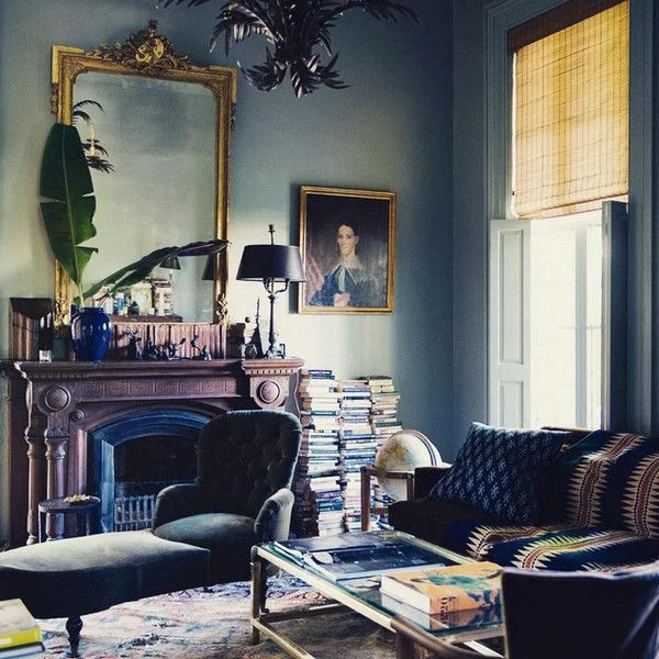 I also love how these random stacks of books look next to the fireplace in this room. (image from lonny.com)